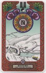 復の卦は、元に復するですとか、同じ事を繰り返すという卦です。この卦は乾為天の陽が、下から次々と陰に剥がされ、山地剥となり、坤為地になり、再び初爻に陽が復したものとみます。その一陽はようやく長じて盛んになる勢いがあります。しかも、この卦は理に順じて動くという徳があります。運勢は徐々に盛運に向かうといえますが、いまは、盛運に向こうか、元に逆戻りするのかの大事な時です。せっかく芽生えた陽気が衰えないよう、そっと運気を見守りましょう。