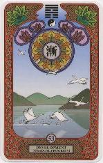 この卦は艮の山の上に巽の木のある象で、木はいつのまにか大木に成長するもので、漸といいます。漸の卦は、天地否の四爻三爻の陰陽が交わって、それぞれが正位を得ます。また、上爻と初爻は位にあたっていませんが、上爻の陽は上に、初爻の陰は下にあります。これは正を得た事になります。男女が正を得るには、例えば籍を入れる場合にしても、焦らず落ちついて段階を踏みながら行うことが望ましいのです。